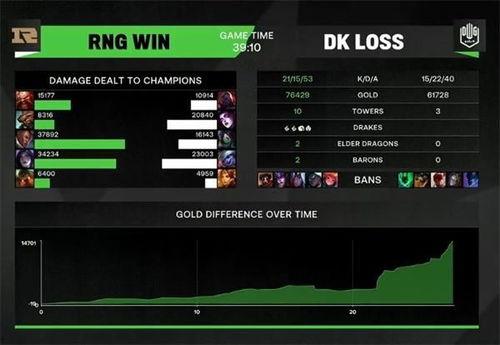 通过这场精彩的对决,我们可以看出,RNG的胜利并非偶然。他们凭借出色的团队协作、精湛的操作和顽强的意志,成功击败了对手。这场胜利不仅证明了RNG的实力,也让我们看到了电竞的魅力。